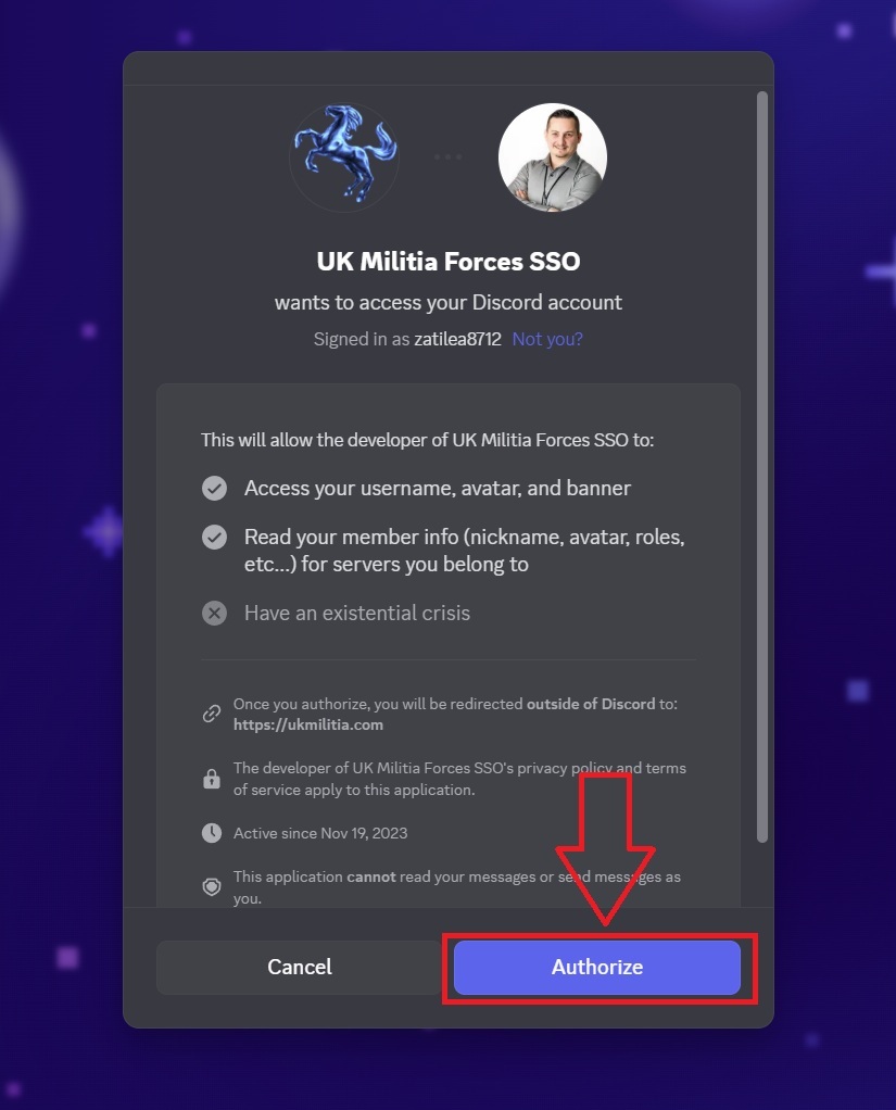 (Click for Screenshot – Example Authorize Discord)